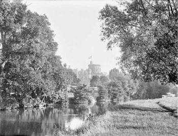 ![]() Северная терраса Виндзорского замка, сфотографированная с бечевника, идущего вдоль Темзы. Фотограф Генри Тонт, 1888 |