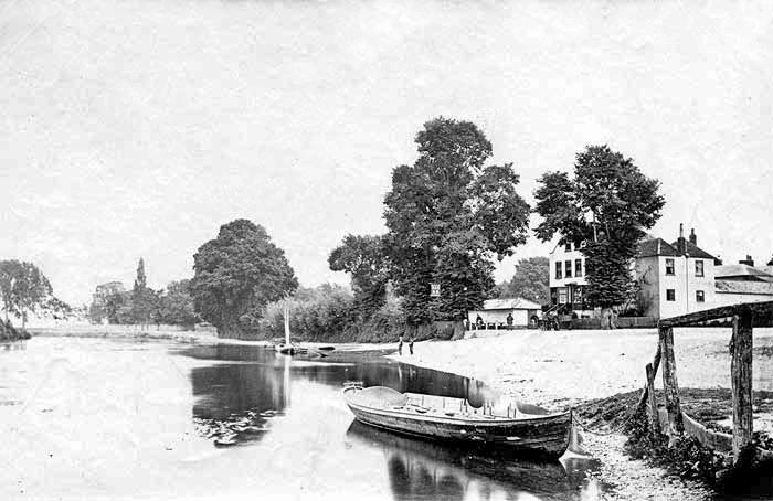 ![]() Темза у Итон-Колледжа. На переднем плане в плоскодонке стоит лодочник, держа шест. Фотограф Генри Тонт, 1880 |